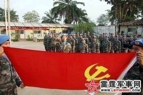 “神龙”车队的240名官兵先后于2003年12月10日和2004年3月20日飞抵利比里亚,他们的主要任务是向联合国驻利比里亚任务区所有维和部队提供运输保障。分队长沈刚锋中校要求部队在执行任务途中,“要光大‘神龙’精神,车队驰骋丛林,要一路播撒和平、友谊的种子”。官兵们发扬“神龙”汽车队“走一路红一线,驻一地红一片”的光荣传统,不畏艰险,自力更生,在一个战乱不息、几近赤贫的国家白手起家。在不到一年的时间内,中国维和部队在利比里亚的维和行动中以现代化的装备、顽强的作风、过硬的素质、精湛的技术、优良的纪律和辉煌的业绩,赢得了利比里亚政府、广大民众和联利团以及维和部队友军的广泛赞誉,展示了中国军队文明之师、威武之师、和平之师的良好形象。