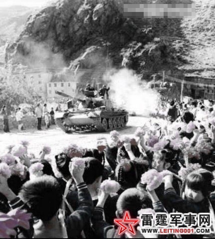 凯旋的我坦克部队受到群众热烈欢迎