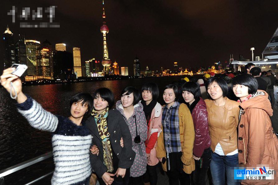 东海舰队上海某水警区通信站即将退伍的女兵们在上海外滩合影留念。